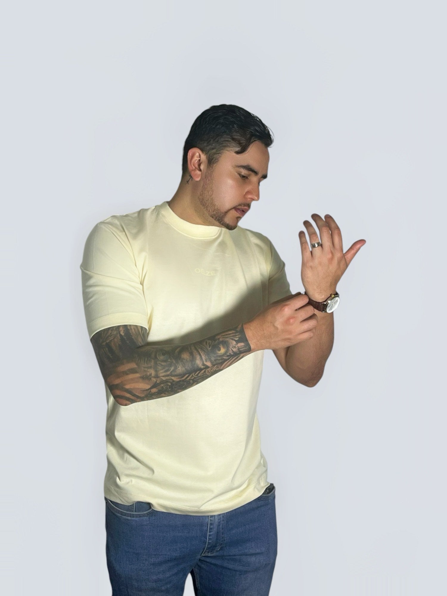 Fabricada en algodón de 205 gramos, esta camiseta combina firmeza, estructura y un tacto premium. Tiene el peso ideal para vestir con presencia sin perder comodidad. Su corte regular la convierte en un esencial que se siente y se nota.